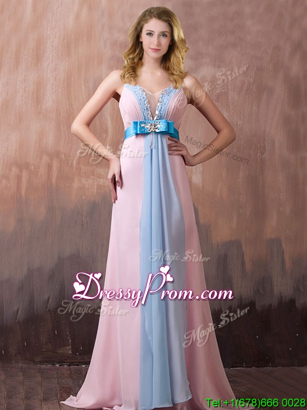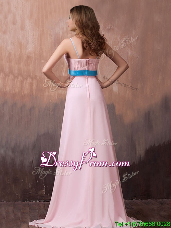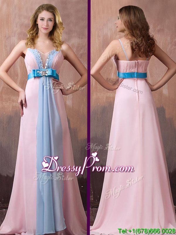 Neckline : Spaghetti strapsShown Color : Pink Sleeve Length : sleevelessBack Detail : ZipperFabric : ChiffonEmbellishment : Beading,BowknotOccasion : Prom,Formal Evening,Homecoming,Graduation,PageantSeason : Spring,Summer,Fall,Winter