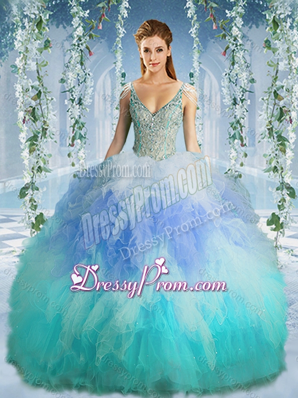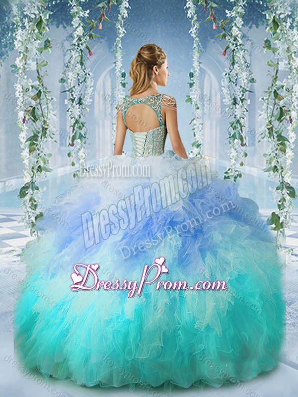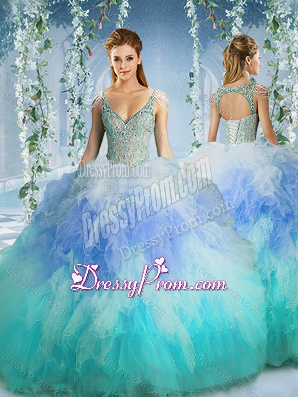 Neckline : V-neckSilhouette : Ball GownsSleeve Length : cap sleevesHemline : floor lengthBack Detail : Lace upFabric : OrganzaEmbellishment : Beading,RufflesOccasion : Military Ball,Sweet 16,QuinceaneraSeason : Spring,Summer,Fall,Winter