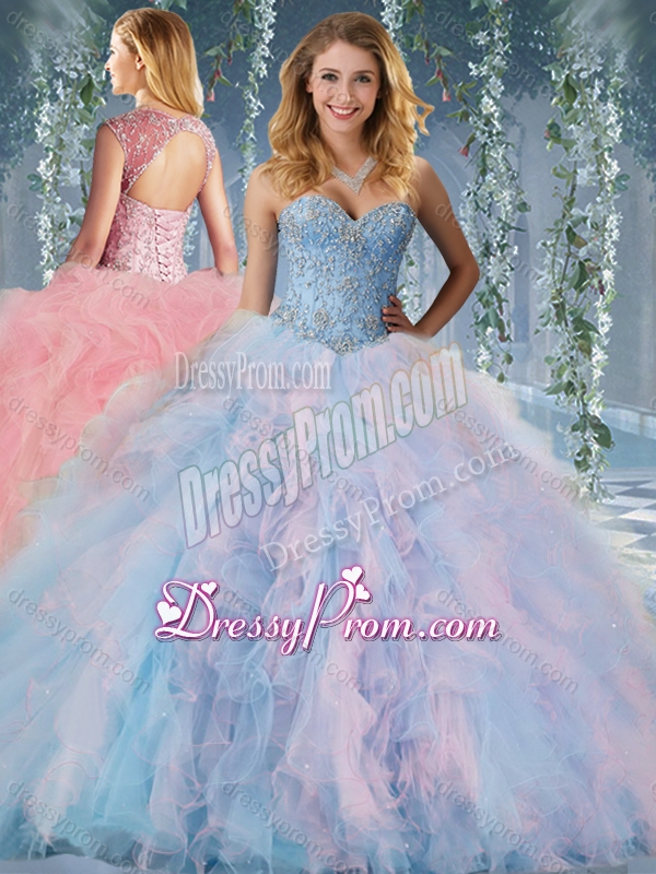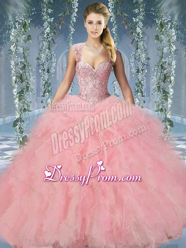 Neckline : SweetheartSilhouette : Ball GownsSleeve Length : sleevelessHemline : floor lengthBack Detail : Lace upFabric : OrganzaEmbellishment : Beading,RufflesOccasion : Military Ball,Sweet 16,QuinceaneraSeason : Spring,Summer,Fall,Winter