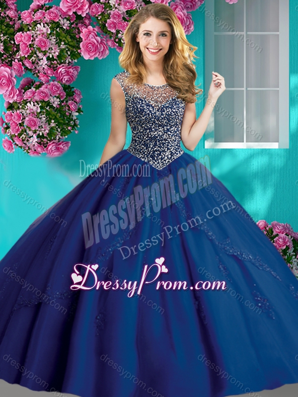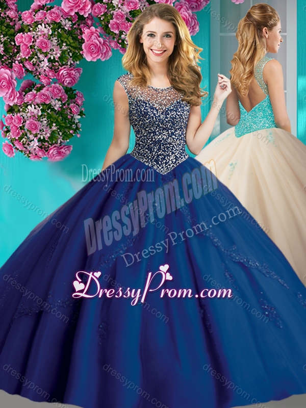 Neckline : ScoopShown Color : Navy BlueSilhouette : Ball GownsSleeve Length : sleevelessHemline : floor lengthFabric : TulleEmbellishment : Beading,AppliquesOccasion : Military Ball,QuinceaneraSeason : Spring,Summer,Fall,Winter