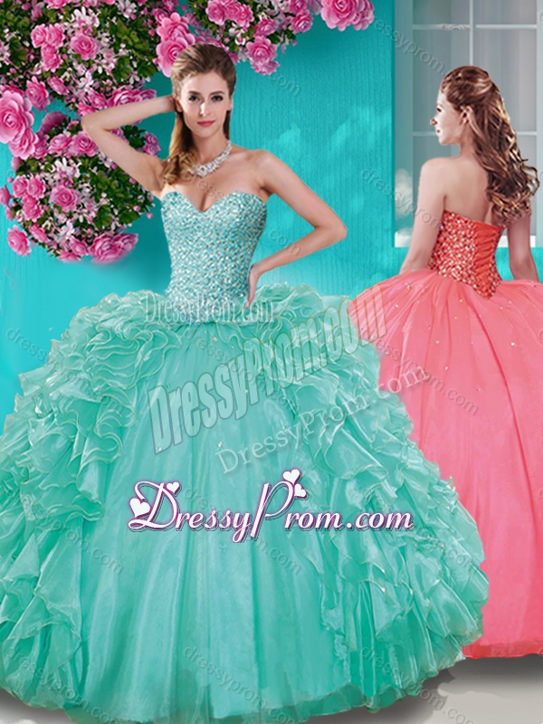 Fashionable Beaded and Ruffled Taffeta Quinceanera Dresses in Really Puffy