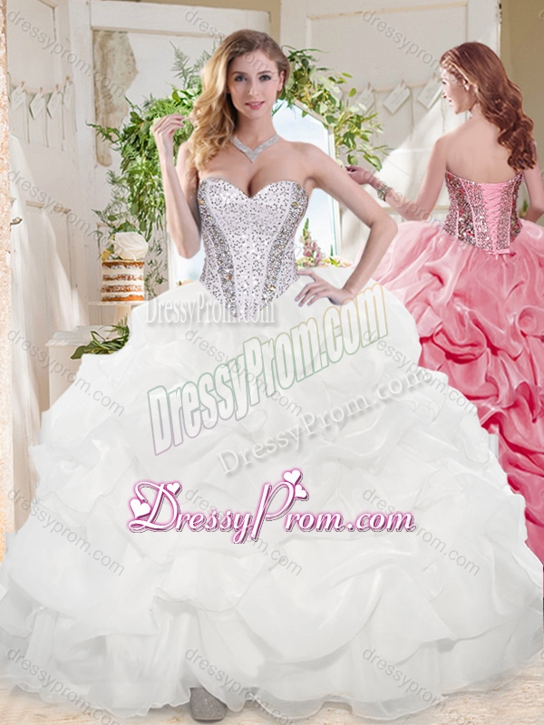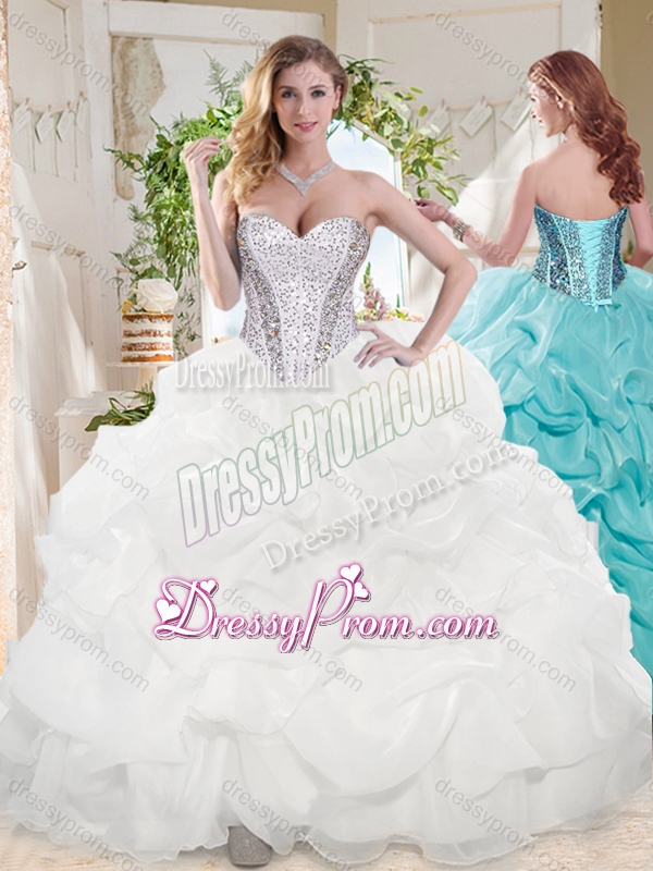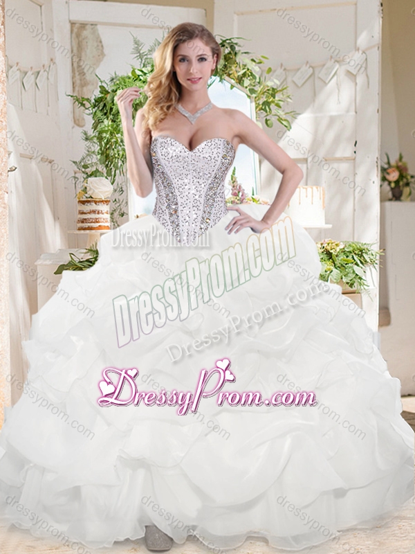 Neckline : SweetheartShown Color : WhiteSilhouette : Ball GownsSleeve Length : sleevelessHemline : floor lengthBack Detail : Lace upFabric : OrganzaEmbellishment : BeadingOccasion : Military Ball,Sweet 16,QuinceaneraSeason : Spring,Summer,Fall,Winter