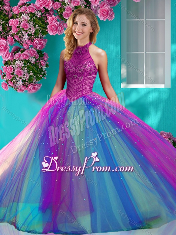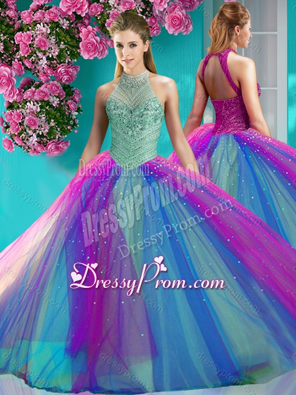 Neckline : Halter topSilhouette : Ball GownsSleeve Length : sleevelessHemline : floor lengthBack Detail : Lace upFabric : TulleEmbellishment : Beading,AppliquesOccasion : Military Ball,Sweet 16,QuinceaneraSeason : Spring,Summer,Fall,Winter