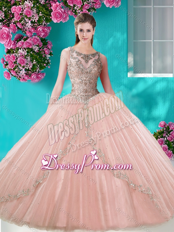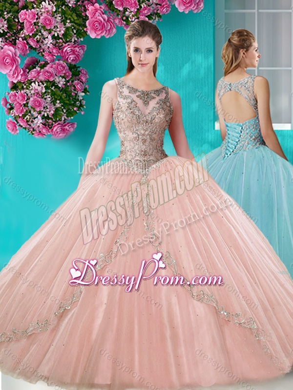 Neckline : High-neckShown Color : Pink Silhouette : Ball GownsSleeve Length : sleevelessBack Detail : Lace upFabric : OrganzaEmbellishment : BeadingOccasion : Military Ball,Sweet 16,QuinceaneraSeason : Spring,Summer,Fall,Winter