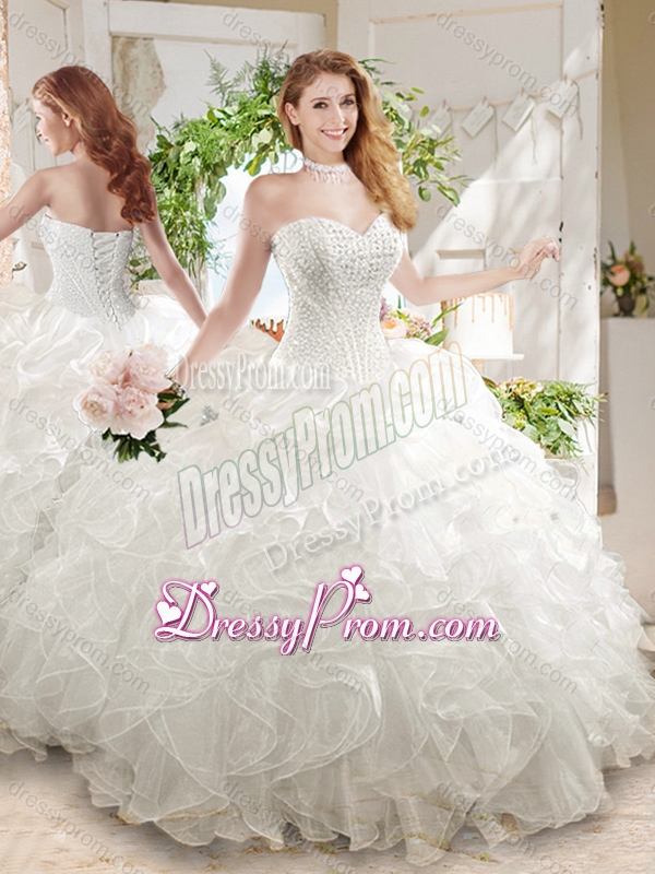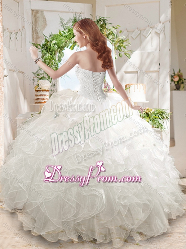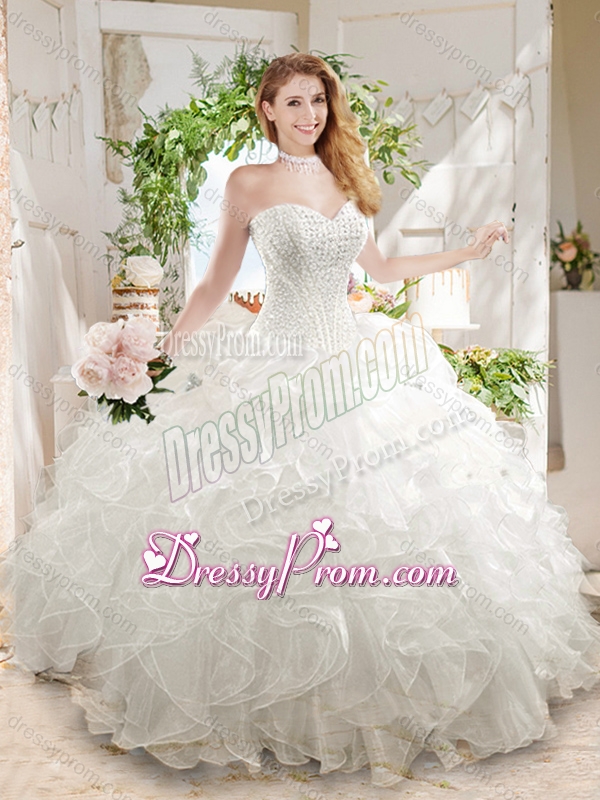 Discount Ball Gown Sweetheart White Quinceanera Dress with Beading and Ruffled