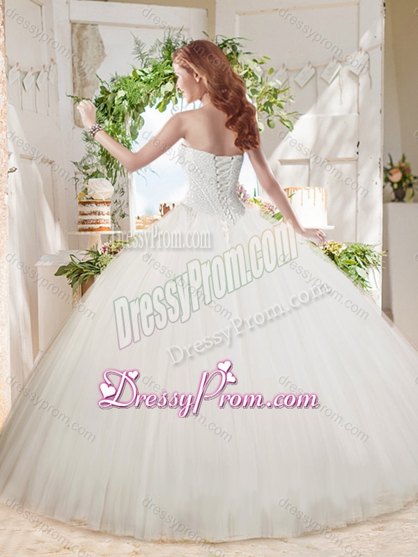 Neckline : SweetheartShown Color : WhiteSilhouette : Ball GownsSleeve Length : sleevelessHemline : with trainBack Detail : Lace upFabric : TulleEmbellishment : BeadingOccasion : Pageant,Sweet 16,QuinceaneraSeason : Spring,Summer,Fall,Winter