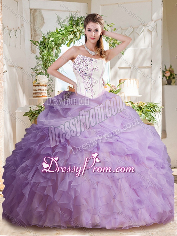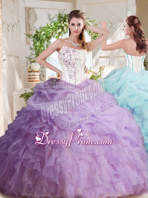 Neckline : AsymmetricShown Color : LavenderSilhouette : Ball GownsSleeve Length : sleevelessHemline : floor lengthBack Detail : Lace upFabric : OrganzaEmbellishment : Beading,RufflesOccasion : Military Ball,Sweet 16,QuinceaneraSeason : Spring,Summer,Fall,Winter