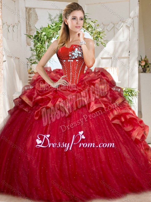 Neckline : SweetheartShown Color : RedSilhouette : Ball GownsSleeve Length : sleevelessHemline : floor lengthBack Detail : Lace upFabric : TulleEmbellishment : Beading,RufflesOccasion : Military Ball,Sweet 16,QuinceaneraSeason : Spring,Summer,Fall,Winter
