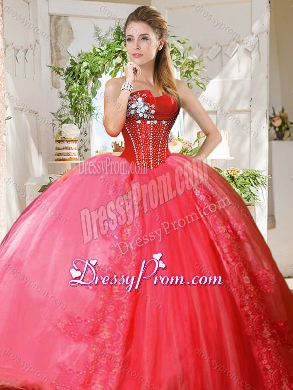 Neckline : StraplessShown Color : Coral RedSilhouette : Ball GownsSleeve Length : sleevelessHemline : floor lengthBack Detail : Lace upFabric : OrganzaEmbellishment : Beading,AppliquesOccasion : Military Ball,Sweet 16,QuinceaneraSeason : Spring,Summer,Fall,Winter