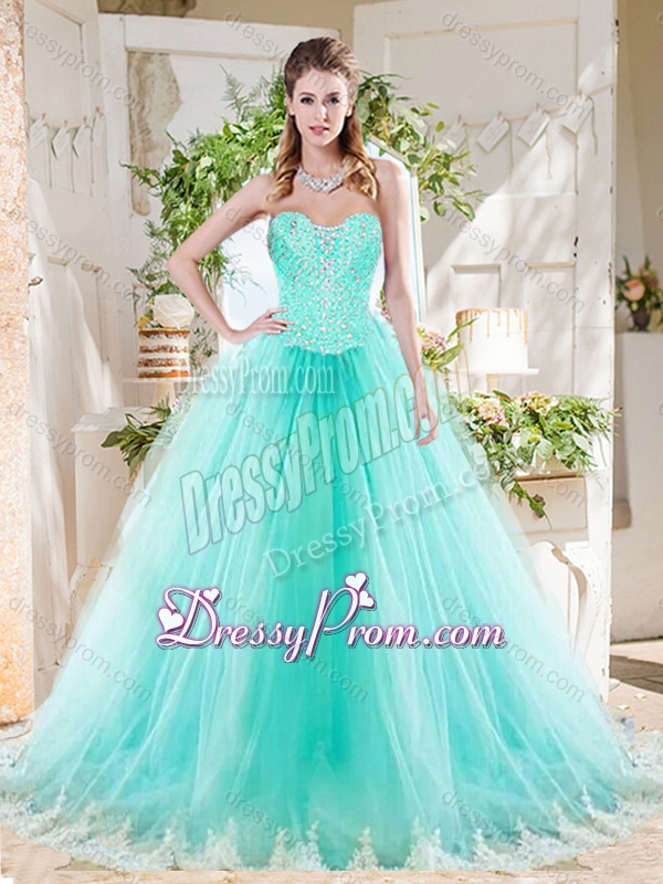 Neckline : SweetheartShown Color : Teal Silhouette : Ball GownsSleeve Length : sleevelessHemline : floor lengthBack Detail : Lace upFabric : TulleEmbellishment : Beading,AppliquesOccasion : Military Ball,Sweet 16,QuinceaneraSeason : Spring,Summer,Fall,Winter