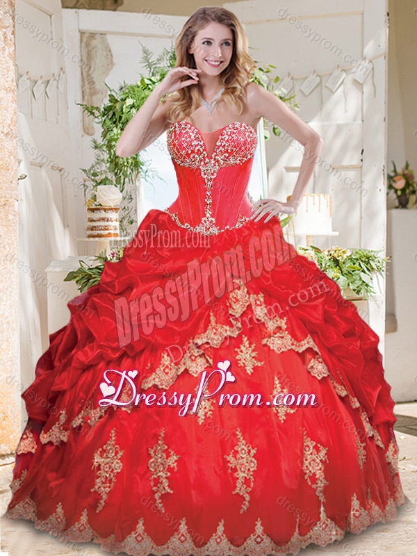 Neckline : SweetheartShown Color : RedSilhouette : Ball GownsSleeve Length : sleevelessHemline : floor lengthBack Detail : Lace upFabric : OrganzaEmbellishment : Beading,AppliquesOccasion : Military Ball,Sweet 16,QuinceaneraSeason : Spring,Summer,Fall,Winter