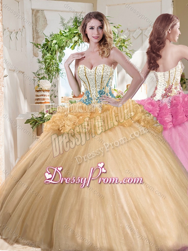 Neckline : SweetheartShown Color : GoldSilhouette : Ball GownsSleeve Length : sleevelessHemline : floor lengthBack Detail : Lace upFabric : OrganzaEmbellishment : BeadingOccasion : Military Ball,Sweet 16,QuinceaneraSeason : Spring,Summer,Fall,Winter