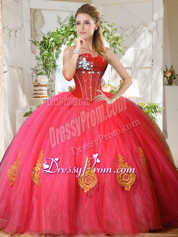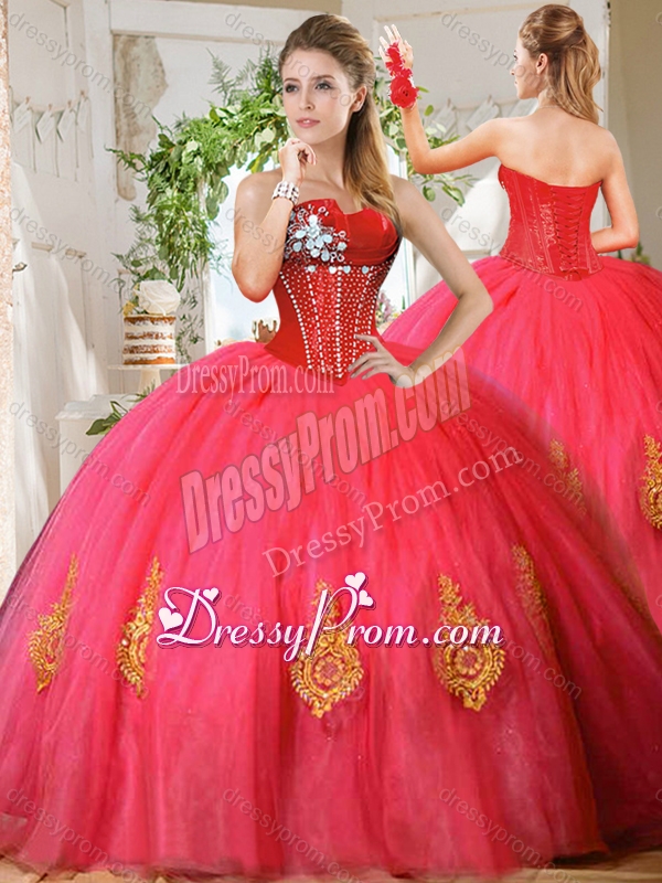 Neckline : StraplessShown Color : RedSilhouette : Ball GownsSleeve Length : sleevelessHemline : floor lengthBack Detail : Lace upFabric : OrganzaEmbellishment : Beading,AppliquesOccasion : Military Ball,Sweet 16,QuinceaneraSeason : Spring,Summer,Fall,Winter