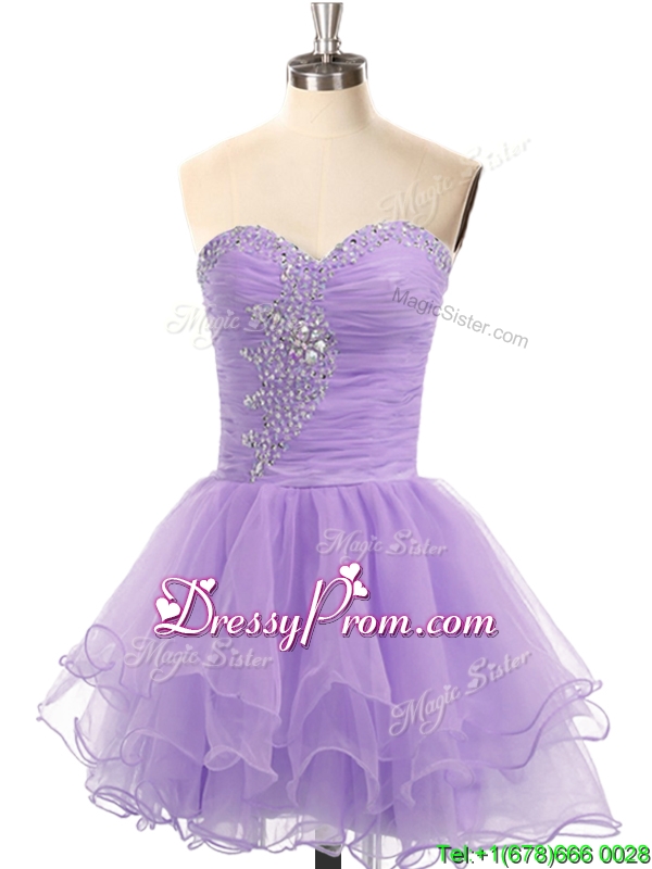 Neckline : SweetheartShown Color : LavenderSilhouette : A-lineSleeve Length : sleevelessHemline : mini lengthBack Detail : Lace upFabric : OrganzaEmbellishment : BeadingOccasion : Prom,Formal Evening,Cocktail,Homecoming,GraduationSeason : Spring,Summer,Fall