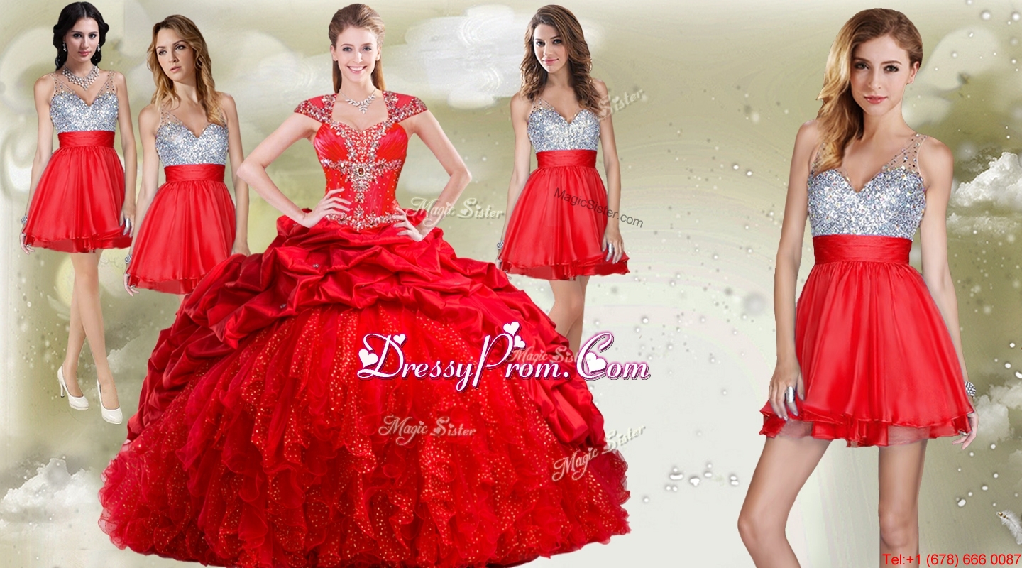 Top Selling Beaded and Pick Ups Quinceanera Dress and Romantic Sequined V Neck Short Dama Dresses
