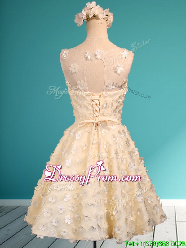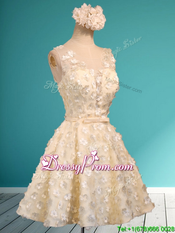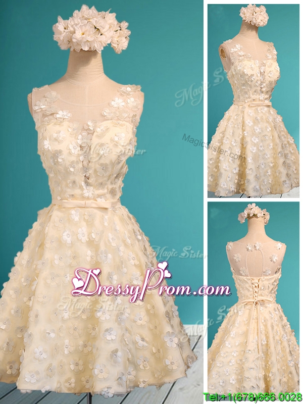 Neckline : ScoopShown Color : ChampagneSilhouette : A-lineSleeve Length : sleevelessHemline : mini lengthBack Detail : Lace upFabric : TulleEmbellishment : Appliques,BeltOccasion : Prom,Party,Cocktail,Homecoming,GraduationSeason : Spring,Summer,Fall,Winter