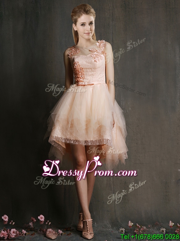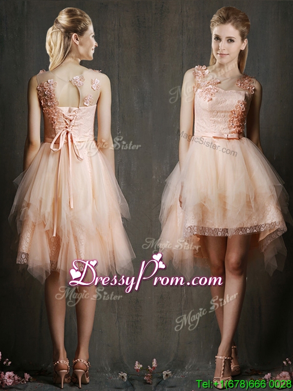 Neckline : ScoopShown Color : Watermelon RedSilhouette : ShortSleeve Length : sleevelessHemline : asymmetricalBack Detail : Lace upFabric : TulleEmbellishment : Appliques,BeltOccasion : Prom,Party,Cocktail,Homecoming,GraduationSeason : Spring,Summer,Fall