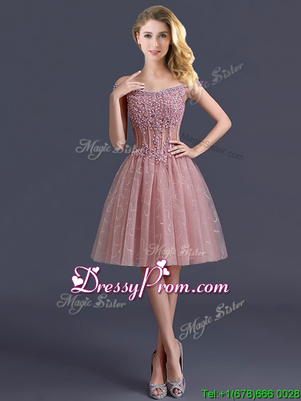 Gorgeous Off the Shoulder Cap Sleeves Dama Dress with Appliques