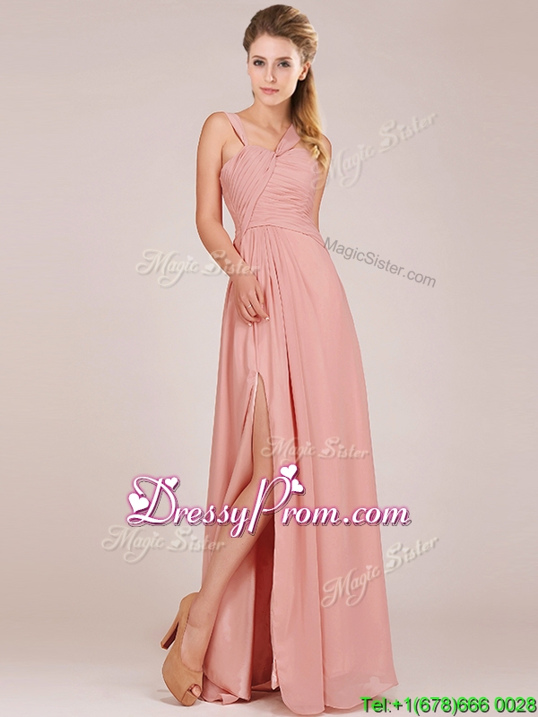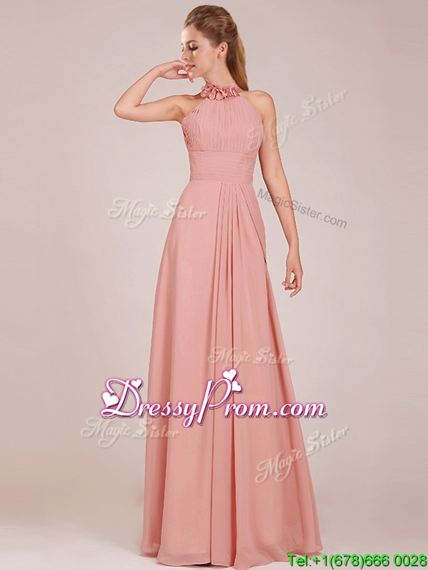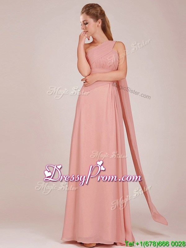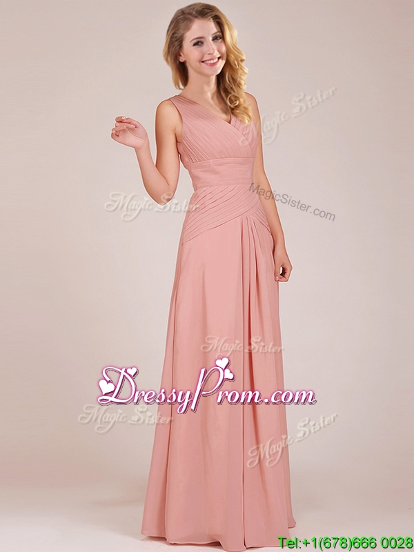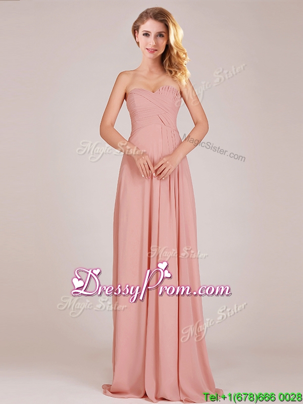 Neckline : SweetheartShown Color : Pink Silhouette : EmpireSleeve Length : sleevelessHemline : floor lengthBack Detail : ZipperFabric : ChiffonEmbellishment : RuchingOccasion : Prom,Party,Cocktail,Homecoming,GraduationSeason : Spring,Summer,Fall,Winter