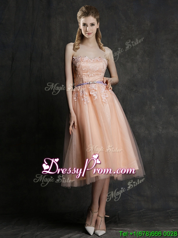 Neckline : StraplessShown Color : Pink Silhouette : A-lineSleeve Length : sleevelessHemline : knee lengthBack Detail : ZipperFabric : TulleEmbellishment : Lace,Sashes|ribbonsOccasion : Prom,Party,Cocktail,Homecoming,GraduationSeason : Spring,Summer,Fall,Winter