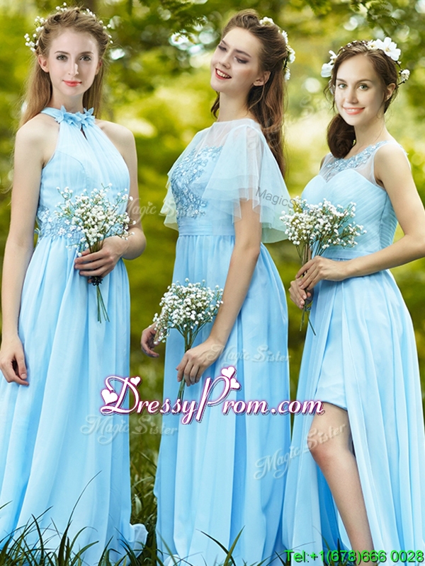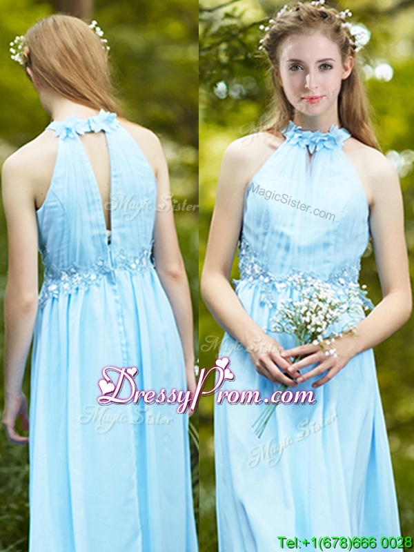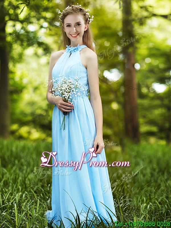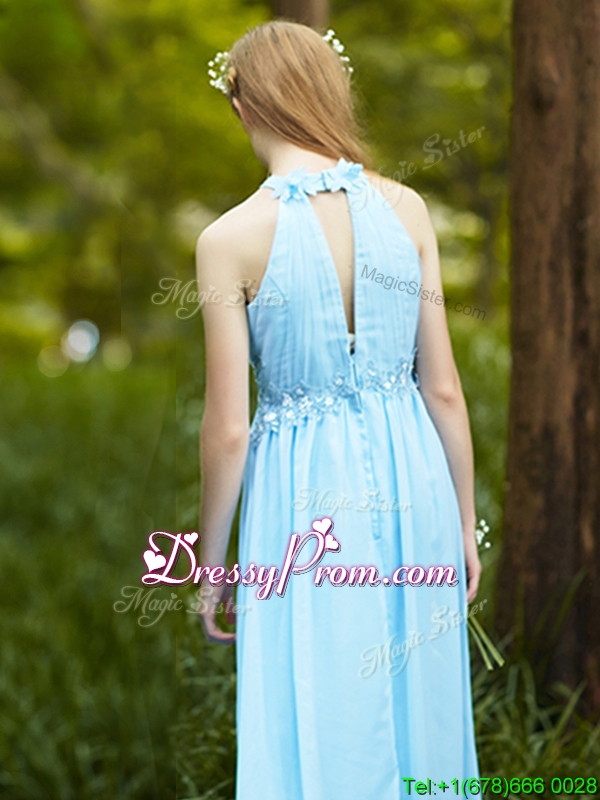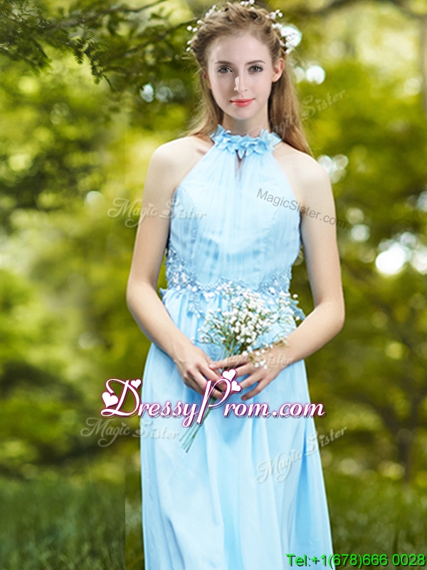 Discount Halter Top Light Blue prom Dress with Appliques