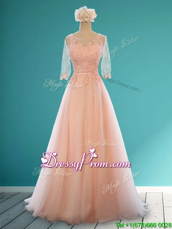Neckline : ScoopShown Color : Wine Red,Pink ,GreySilhouette : A-lineSleeve Length : half sleevesHemline : floor lengthBack Detail : Lace upFabric : TulleEmbellishment : Appliques,BeltOccasion : Prom,Party,Cocktail,Homecoming,GraduationSeason : Spring,Summer,Fall,Winter
