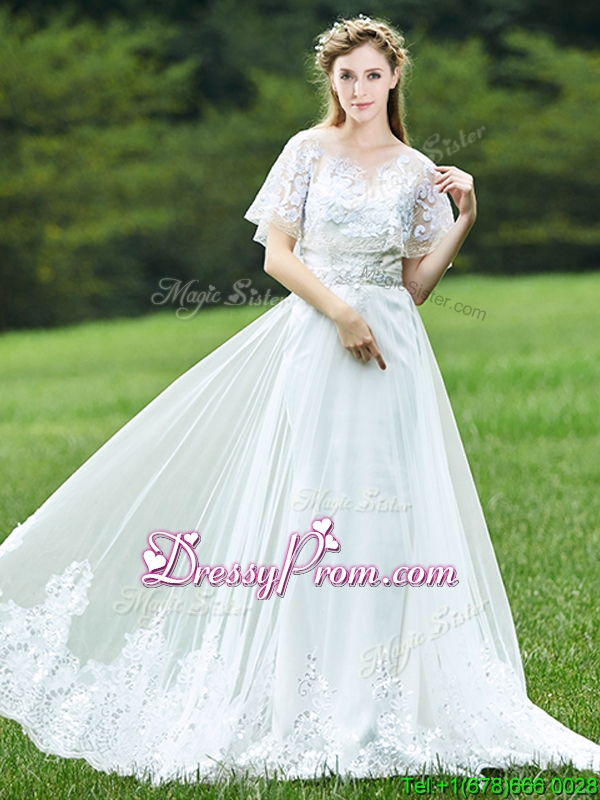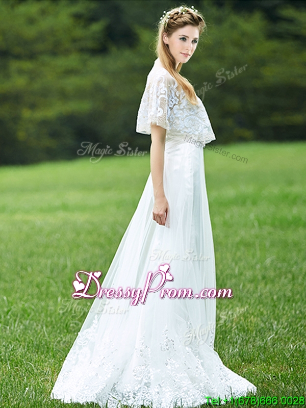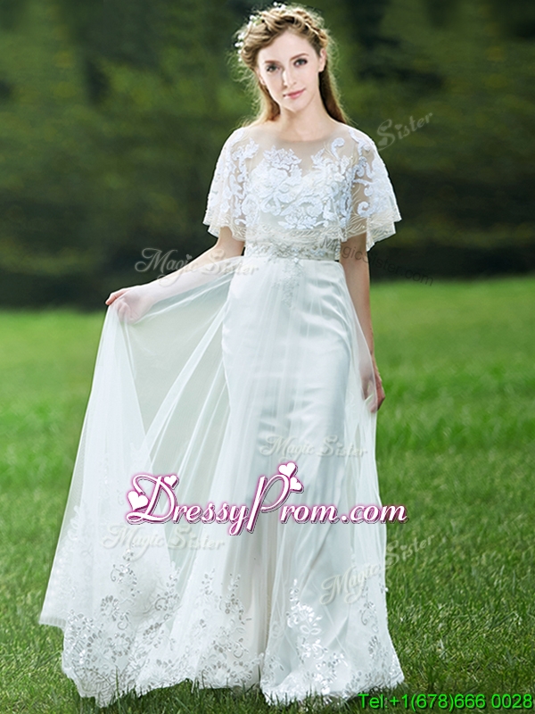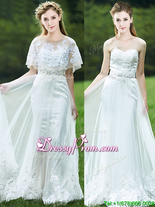 Neckline : SweetheartShown Color : WhiteSilhouette : A-lineSleeve Length : sleevelessHemline : with trainBack Detail : ZipperFabric : TulleEmbellishment : AppliquesOccasion : Prom,Party,Cocktail,Homecoming,GraduationSeason : Spring,Summer,Fall,Winter