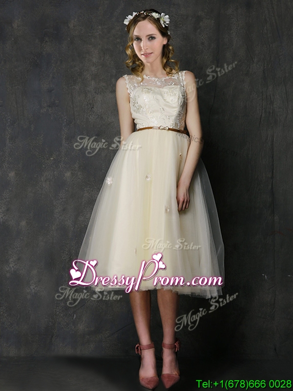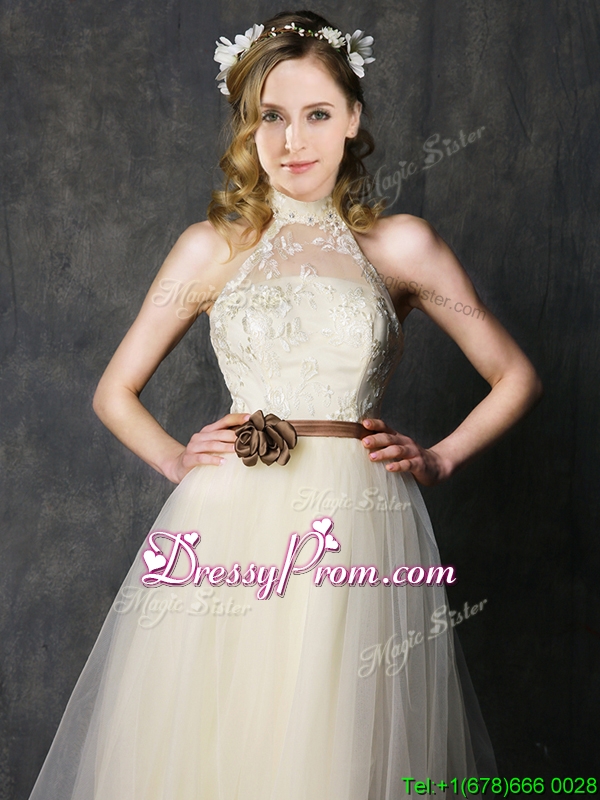 Neckline : One shoulderShown Color : ChampagneSilhouette : A-lineSleeve Length : sleevelessHemline : knee lengthBack Detail : ZipperFabric : TulleEmbellishment : Appliques,Sashes|ribbons,Belt,Hand Made FlowerOccasion : Prom,Party,Cocktail,Homecoming,GraduationSeason : Spring,Summer,Fall