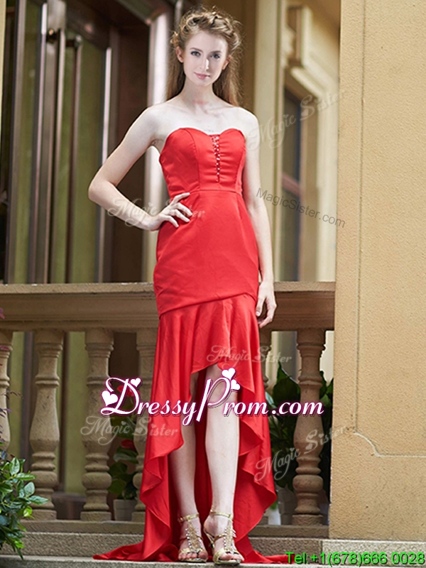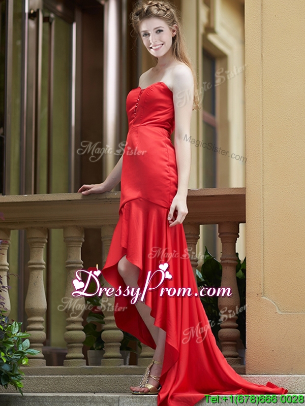 Neckline : SweetheartShown Color : RedSilhouette : Column/SheathSleeve Length : sleevelessHemline : with trainBack Detail : ZipperFabric : SatinEmbellishment : RuchingOccasion : Prom,Party,Cocktail,Homecoming,GraduationSeason : Spring,Summer,Fall,Winter