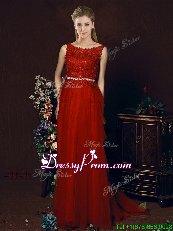 Neckline : ScoopShown Color : White,RedSilhouette : EmpireSleeve Length : sleevelessHemline : with trainBack Detail : ZipperFabric : TulleEmbellishment : BeltOccasion : Prom,Party,Cocktail,Homecoming,GraduationSeason : Spring,Summer,Fall,Winter