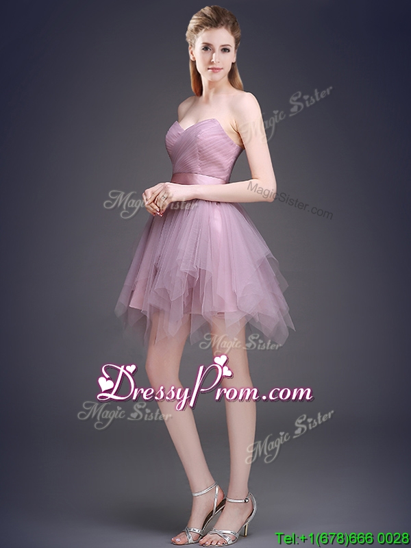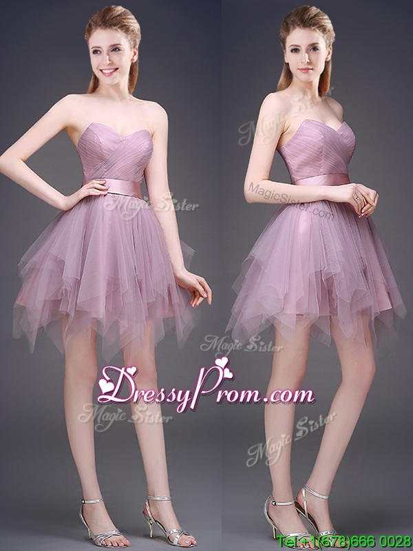 Neckline : SweetheartShown Color : LavenderSilhouette : A-lineSleeve Length : sleevelessHemline : mini lengthBack Detail : Lace upFabric : TulleEmbellishment : Ruffles,BeltOccasion : Prom,Party,Cocktail,Homecoming,GraduationSeason : Spring,Summer,Fall