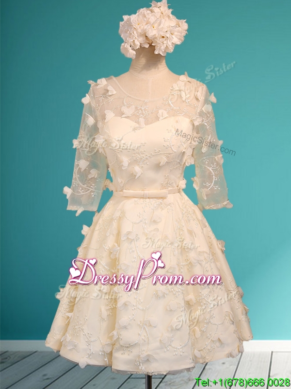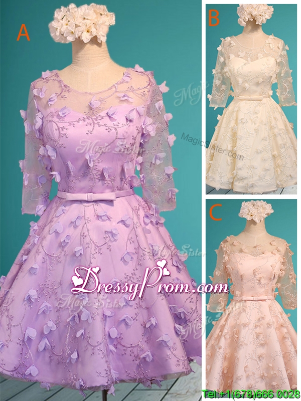 Neckline : ScoopShown Color : Pink ,Lilac,ChampagneSilhouette : A-lineSleeve Length : half sleevesHemline : mini lengthBack Detail : Lace upFabric : Satin,TulleEmbellishment : Appliques,BeltOccasion : Prom,Party,Cocktail,Homecoming,GraduationSeason : Spring,Summer,Fall