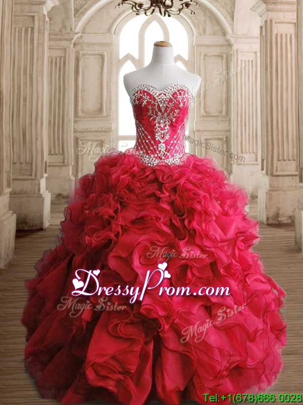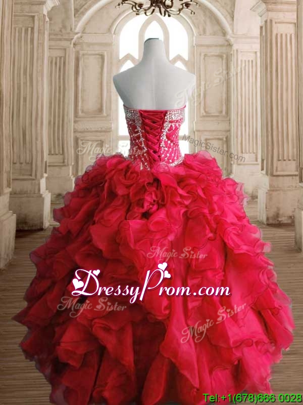 Luxurious Red Big Puffy Sweet 16 Dress with Beading and Ruffles