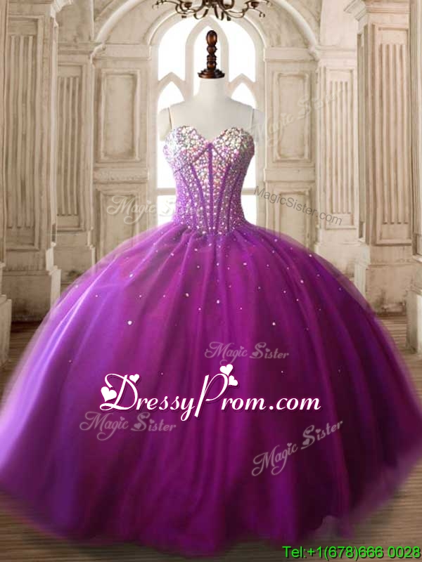 Modest Beaded Bodice Big Puffy Quinceanera Dress in Fuchsia