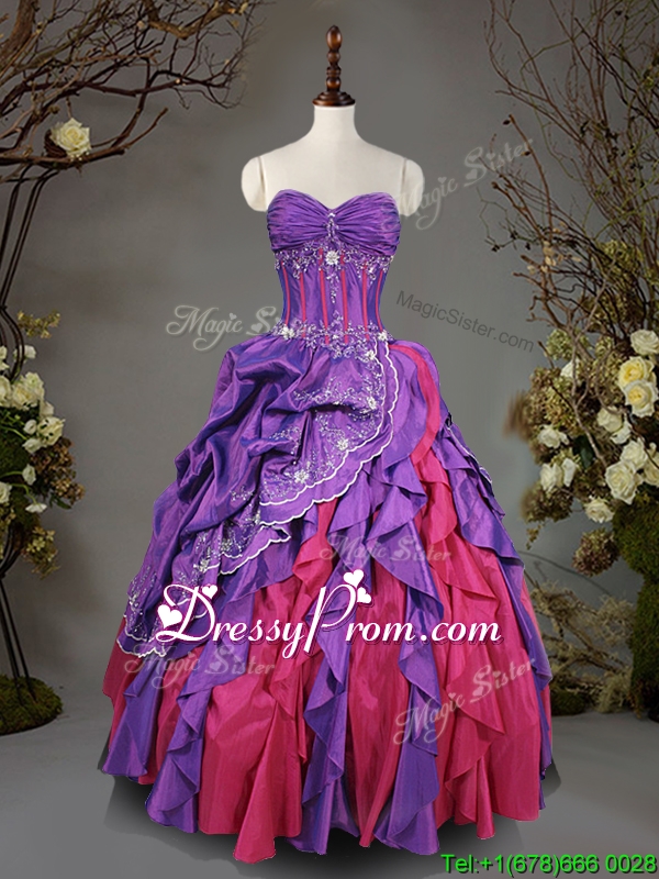 Neckline : SweetheartShown Color : Coral Red,PurpleSilhouette : Ball GownsSleeve Length : sleevelessHemline : floor lengthBack Detail : Lace upFabric : TaffetaEmbellishment : Beading,Pick UpsOccasion : Military Ball,Sweet 16,QuinceaneraSeason : Spring,Summer,Fall,Winter
