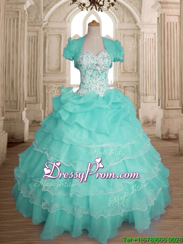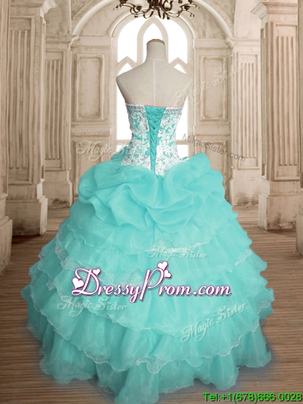 Neckline : SweetheartShown Color : Apple GreenSilhouette : Ball GownsSleeve Length : sleevelessHemline : floor lengthBack Detail : Lace upFabric : OrganzaEmbellishment : Beading,Appliques,Ruffled Layers,Pick UpsOccasion : Military Ball,Sweet 16,QuinceaneraSeason : Spring,Summer,Fall,Winter