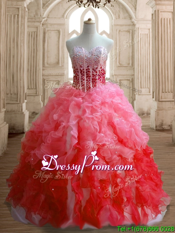 Perfect Gradient Color Organza Quinceanera Dress with Beading and Ruffles