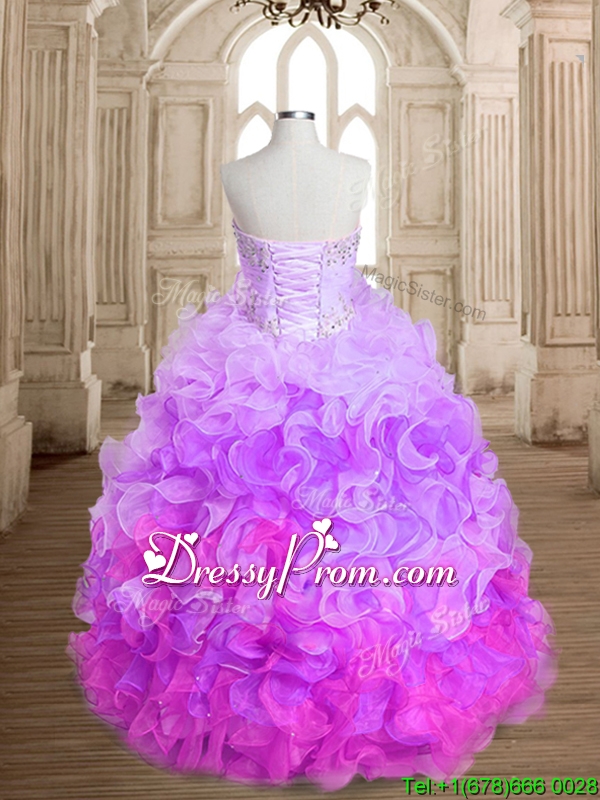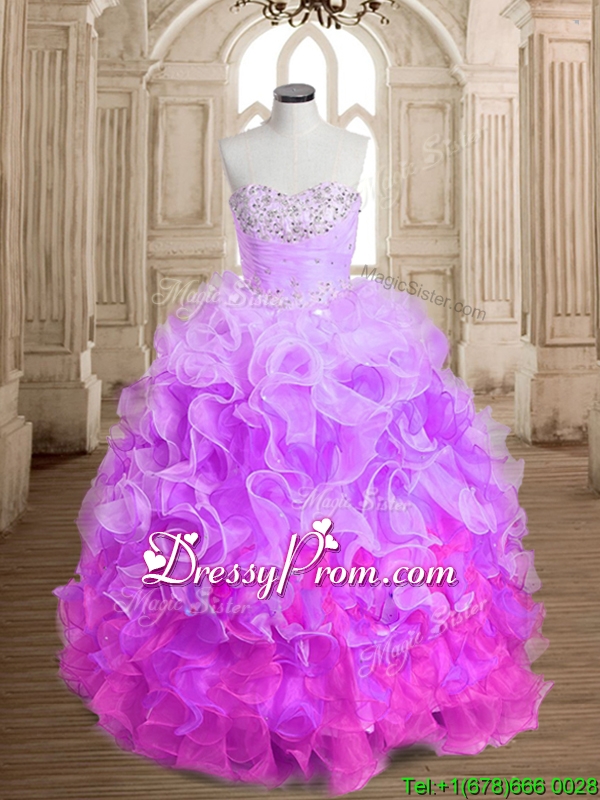 Most Popular Beaded and Ruffled Colorful Quinceanera Dress in Organza