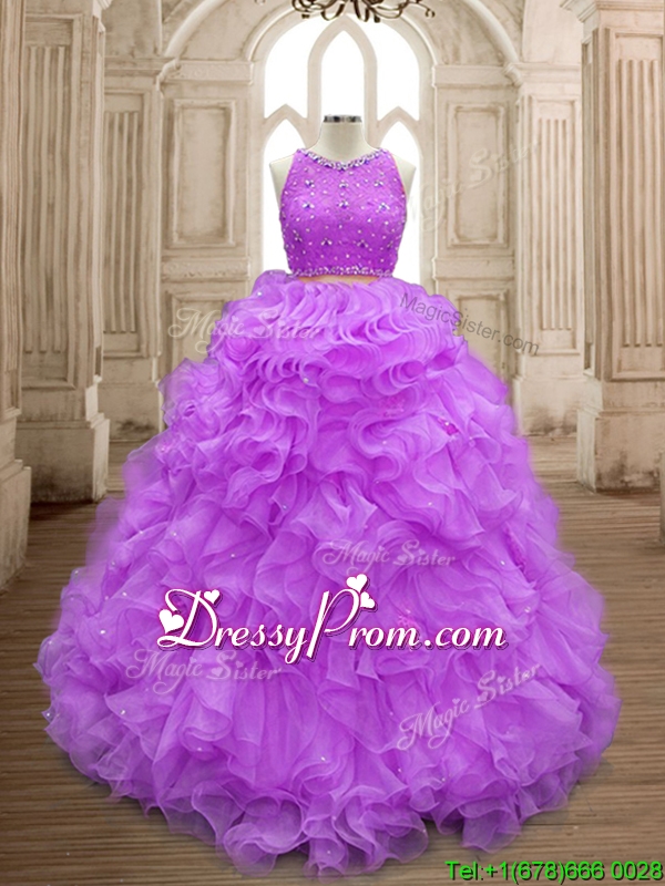 Wonderful Beaded and Ruffled Scoop Sweet 16 Dress in Lilac