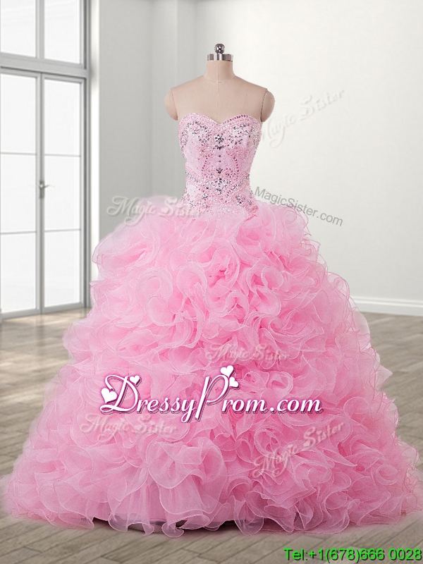 Lovely Baby Pink Detachable Quinceanera Dress with Beading and Ruffles