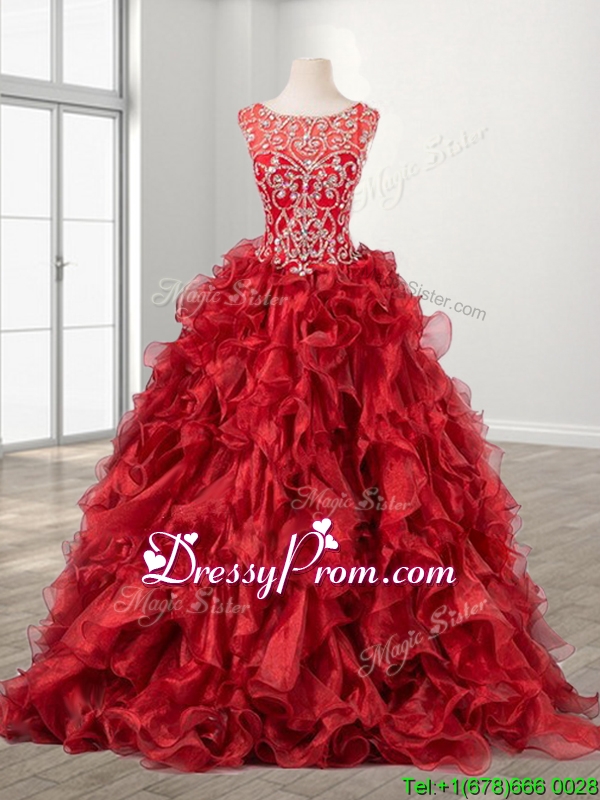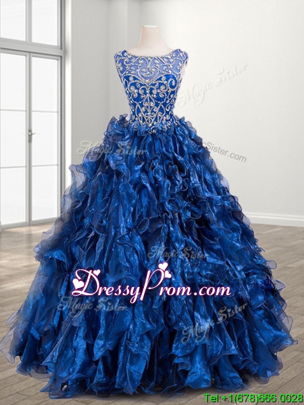 Neckline : ScoopShown Color : Wine Red,Royal Blue,ChampagneSilhouette : Ball GownsSleeve Length : sleevelessHemline : floor lengthBack Detail : Lace upFabric : OrganzaEmbellishment : Beading,RufflesOccasion : Military Ball,Sweet 16,QuinceaneraSeason : Spring,Summer,Fall,Winter