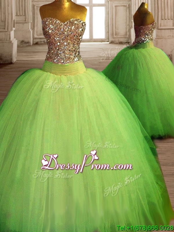 Neckline : SweetheartShown Color : Spring GreenSilhouette : Ball GownsSleeve Length : sleevelessHemline : floor lengthBack Detail : ZipperFabric : TulleEmbellishment : BeadingOccasion : Military Ball,Sweet 16,QuinceaneraSeason : Spring,Summer,Fall,Winter