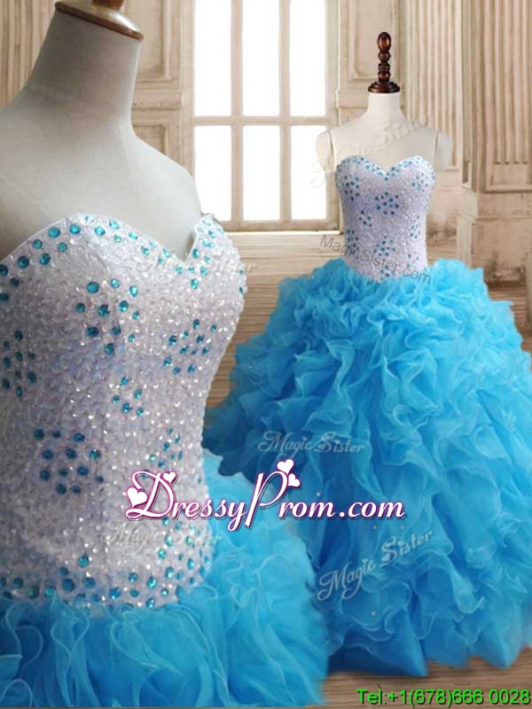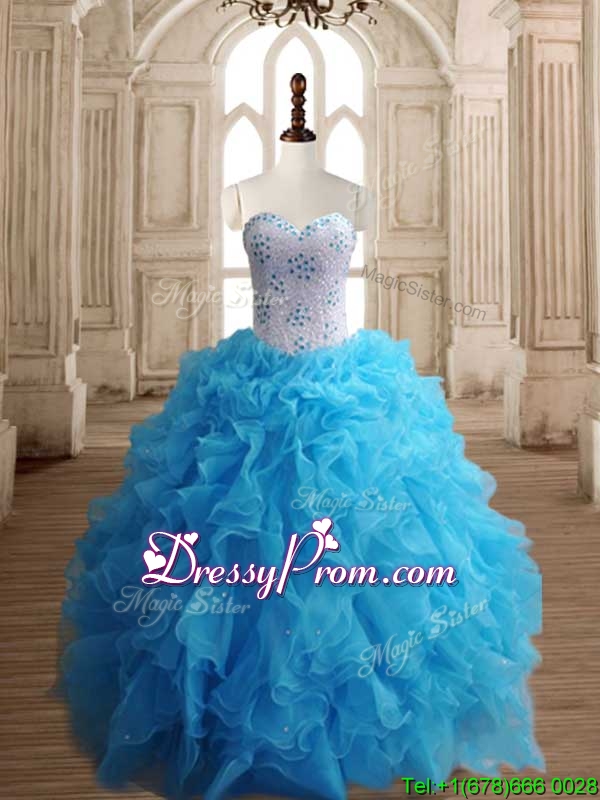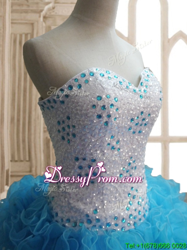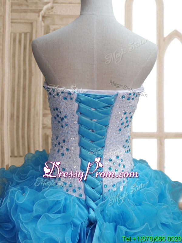 Affordable Baby Blue Big Puffy Quinceanera Dress with Beading and Ruffles