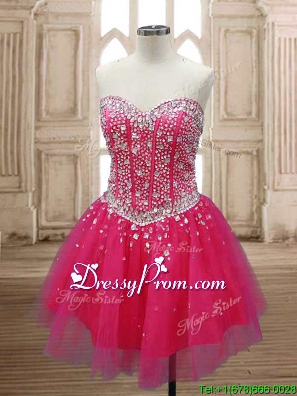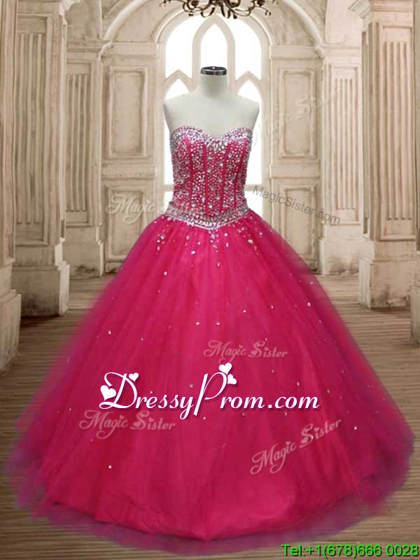 Neckline : SweetheartShown Color : Hot PinkSilhouette : A-lineSleeve Length : sleevelessHemline : floor lengthBack Detail : Lace upFabric : TulleEmbellishment : BeadingOccasion : Military Ball,Sweet 16,QuinceaneraSeason : Spring,Summer,Fall,Winter