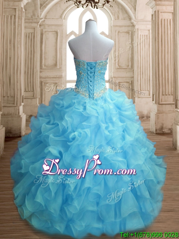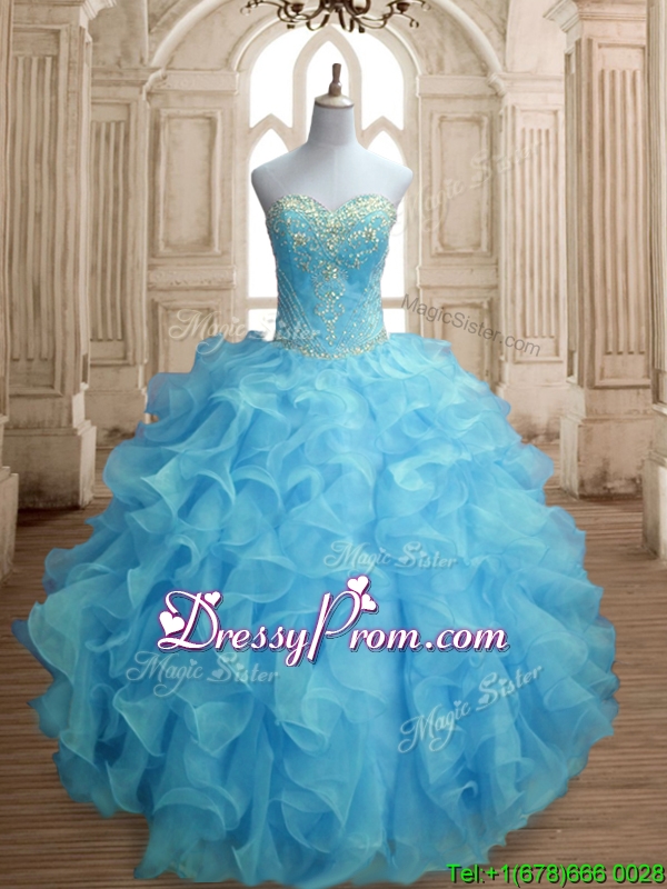 Popular Beaded and Ruffled Quinceanera Dress in Baby Blue