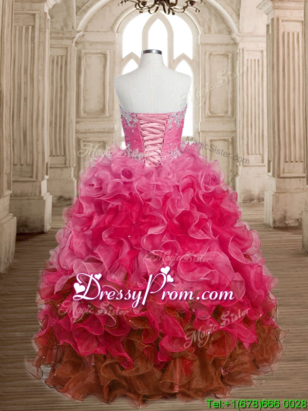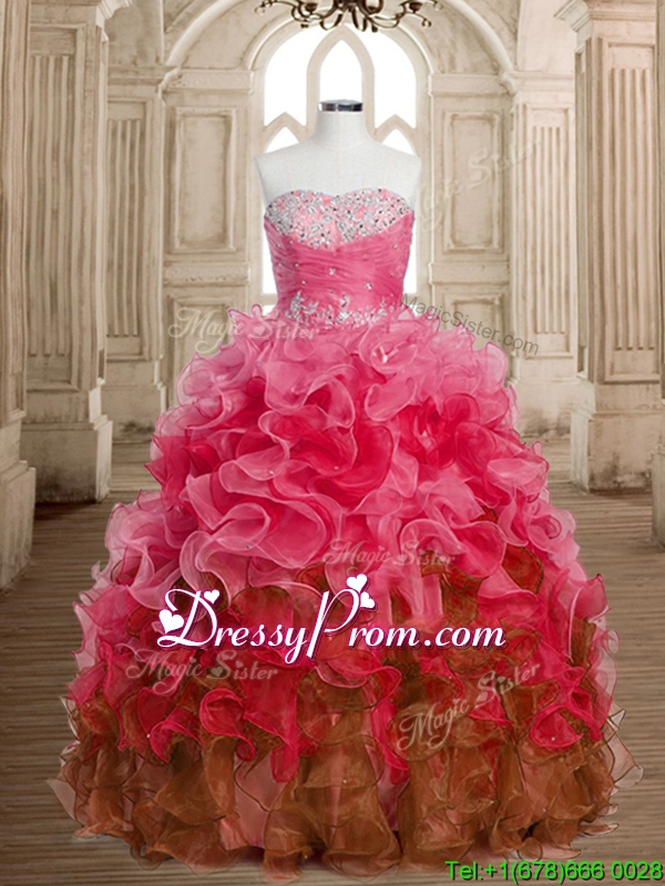 Perfect Big Puffy Beaded and Ruffles Quinceanera Dress in Multi Color