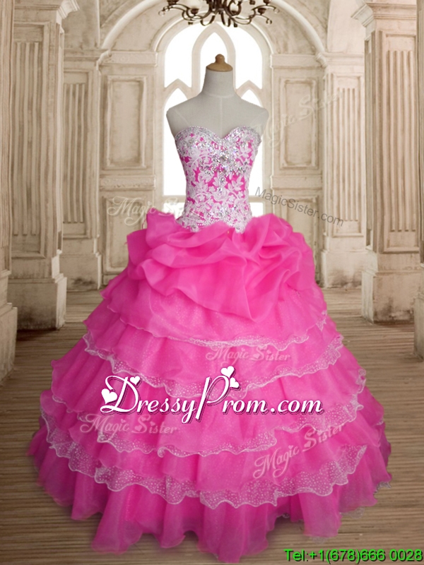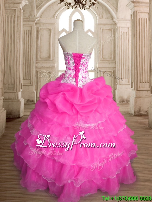 Neckline : SweetheartSilhouette : Ball GownsSleeve Length : sleevelessHemline : floor lengthBack Detail : Lace upFabric : OrganzaEmbellishment : Beading,Appliques,Ruffled Layers,Pick UpsOccasion : Military Ball,Sweet 16,QuinceaneraSeason : Spring,Summer,Fall,Winter