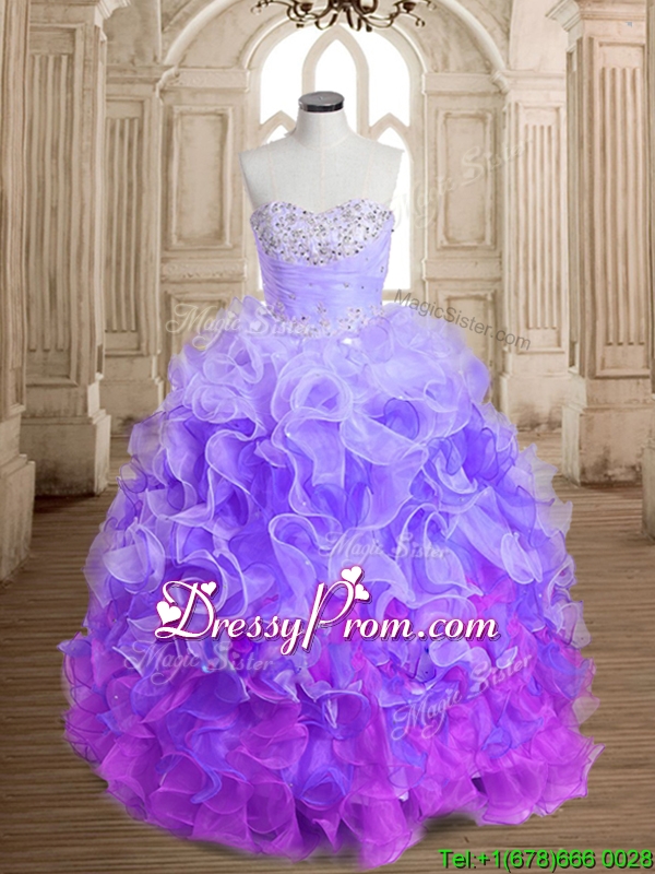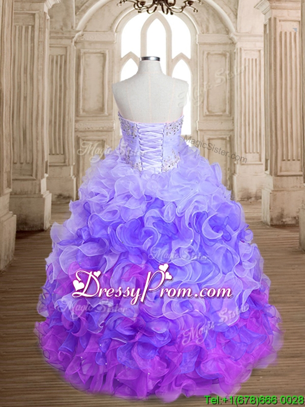 Unique Rainbow Big Puffy Quinceanera Dress with Beading and Ruffles