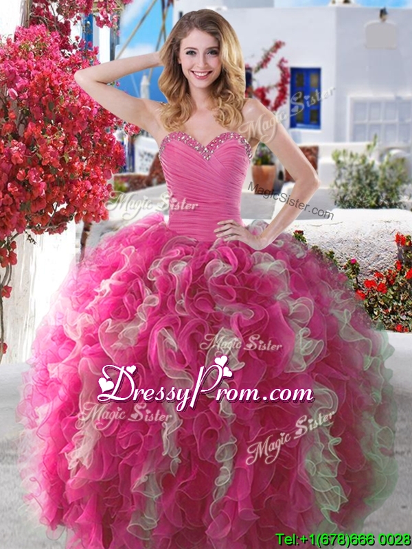 2016 New Arrivals Beaded and Ruffled Quinceanera Gown in Hot Pink and Champagne