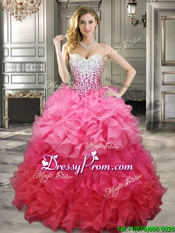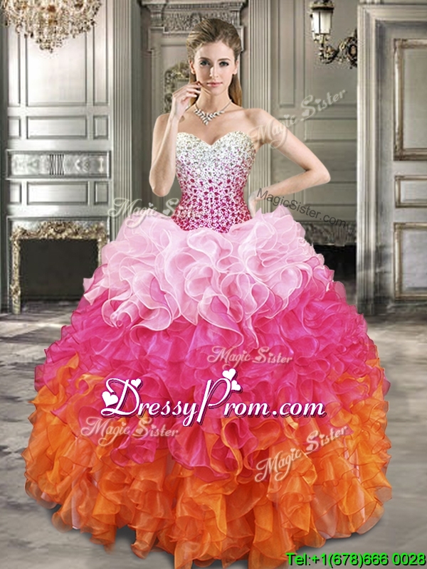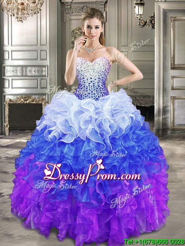 2016 Fashionable Beaded Bodice and Ruffled Quinceanera Dress in Gradient Color